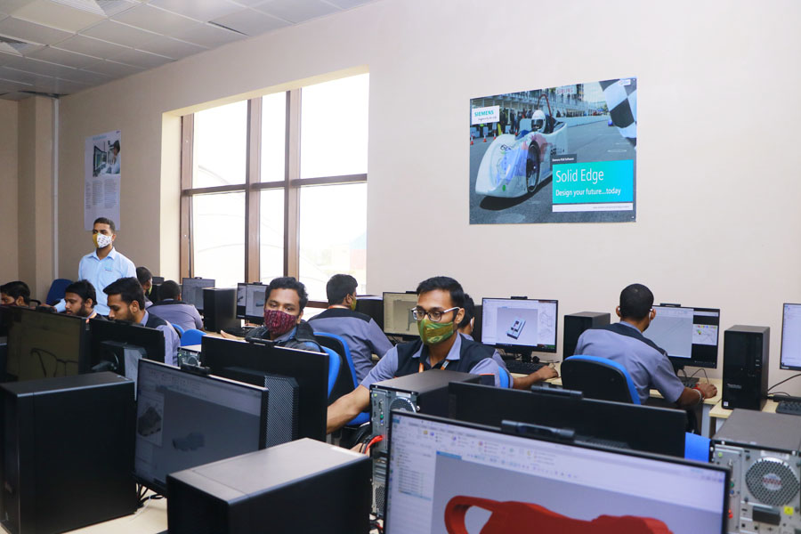 This Center of Excellence (CoE) in Welding set up in collaboration with Finnish MNC Kemppi, design leader in the arc welding industry, imparts hands on training on various welding technology using state of the art equipment like Robotic MIG/MAG Welding machines (Kuka make robots), IoT based MIG/MAG Welding Machine, Pulse MIG/MAG Welding Machine, Basic MIG/MAG Welding Machine, DC TIG Welding Machine, AC/DC TIG Welding Machine, MMA Welding Machine, Plasma Cutting Machine with Carriage, Submerged Arc Welding Machine with Carriage, Spot Welding Machine, Smart machines with Weld Eye- TWQMS Software. A NDT section with Dye Penetrant, Magnetic Particle and Ultrasonic test facilities; Fume Extraction system for all 24 welding booths; Power Hacksaw and Bench Drilling machines complete the total set-up.